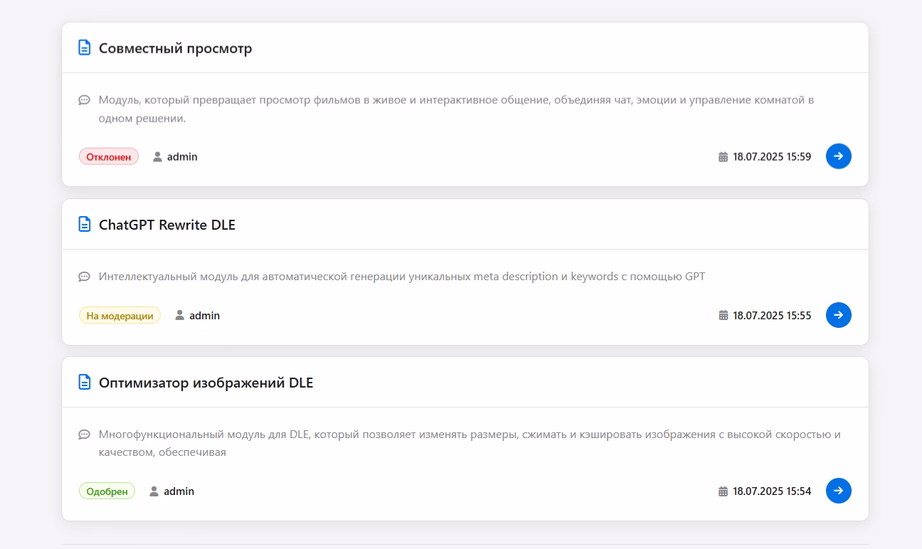 Универсальный модуль для DLE, позволяющий эффективно принимать, модерировать и обрабатывать заявки или заказы от пользователей прямо на вашем сайте. Он обеспечивает полный контроль для администраторов и прозрачное отслеживание статусов для пользователей, улучшая взаимодействие с аудиторией и систематизируя рабочий процесс.