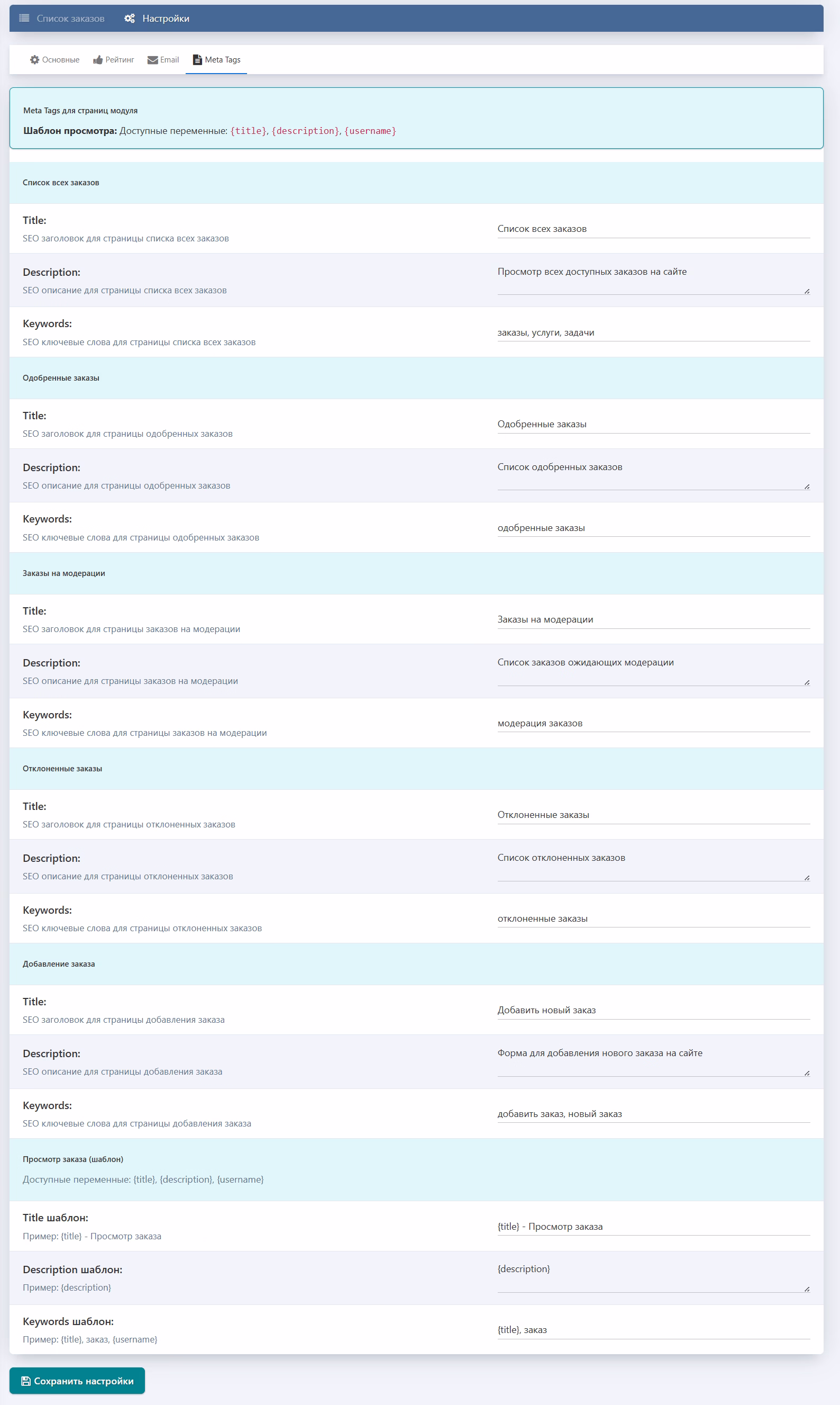 "Показывать все заказы на фронтенде": Переключатель, позволяющий выбрать, будут ли на публичной странице отображаться только одобренные заказы, или все (включая на модерации и отклоненные). Это дает вам полный контроль над видимостью заявок.